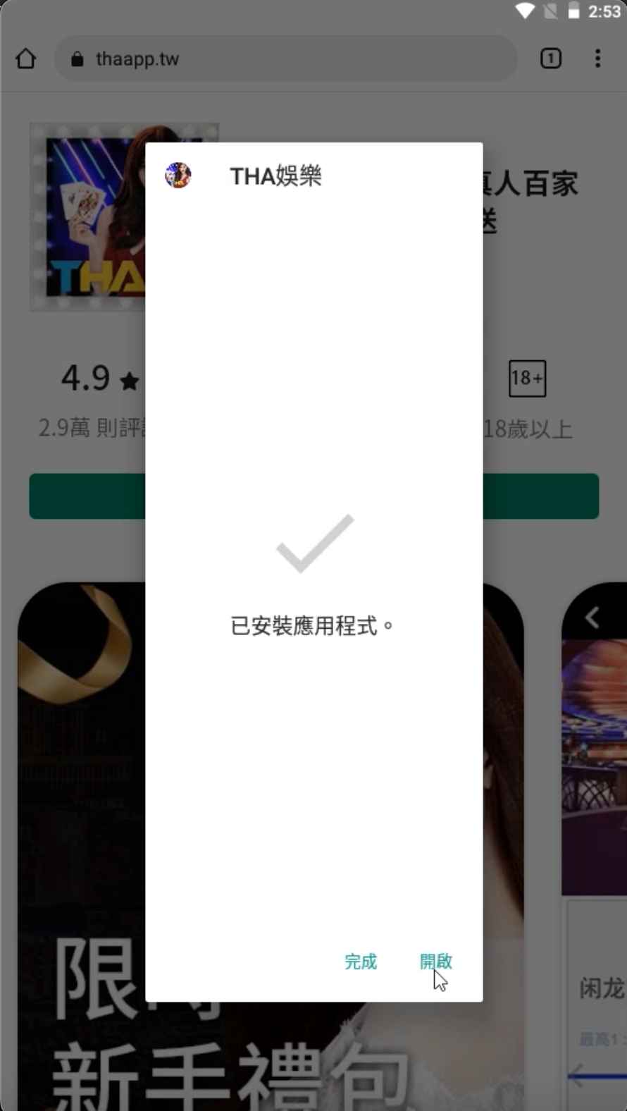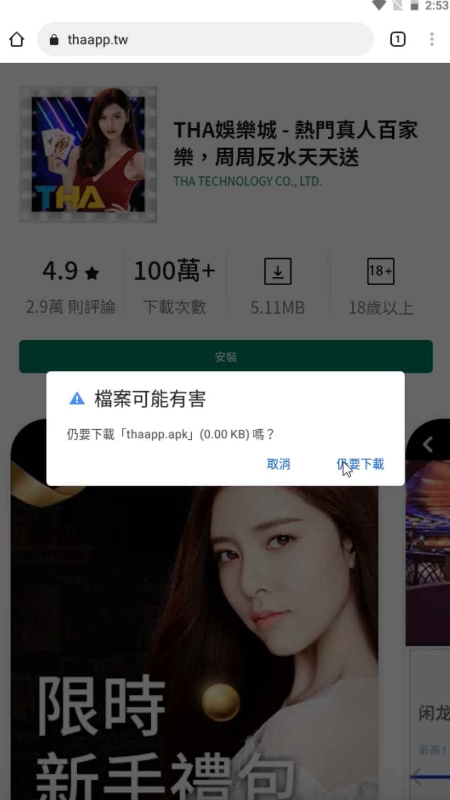 點擊下載連結:點擊THA娛樂城下載連結,系統將引導您進入下載頁面。在該頁面上,您會看到一個下載按鈕,請點選「打開」。