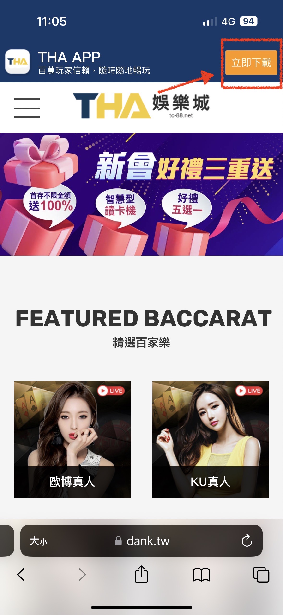 訪問官方網站:打開您的瀏覽器,訪問THA娛樂城的官方網站,點擊右上角的app下載。